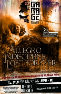 Pessoal, HISTÓRICO!!! Dia 25 de novembro tem Show do Allegro no Odisséia!! Isso mesmo, show do Allegro, minha antiga banda de Heavy Metal e onde comecei a escrever minhas primeiras músicas. Resolvemos fazer um som e eu espero vocês por lá porque vai ser muito divertido!!